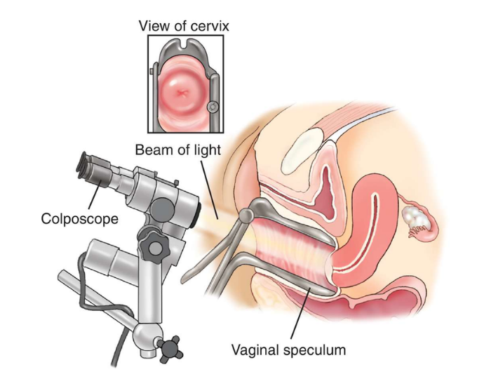 La colposcopie est une méthode instrumentale d’examen de la cavité vaginale (vagin et col), qui permet l’observation, à grossissement variable, de la surface du col utérin grâce à un système optique doté d’une source lumineuse.